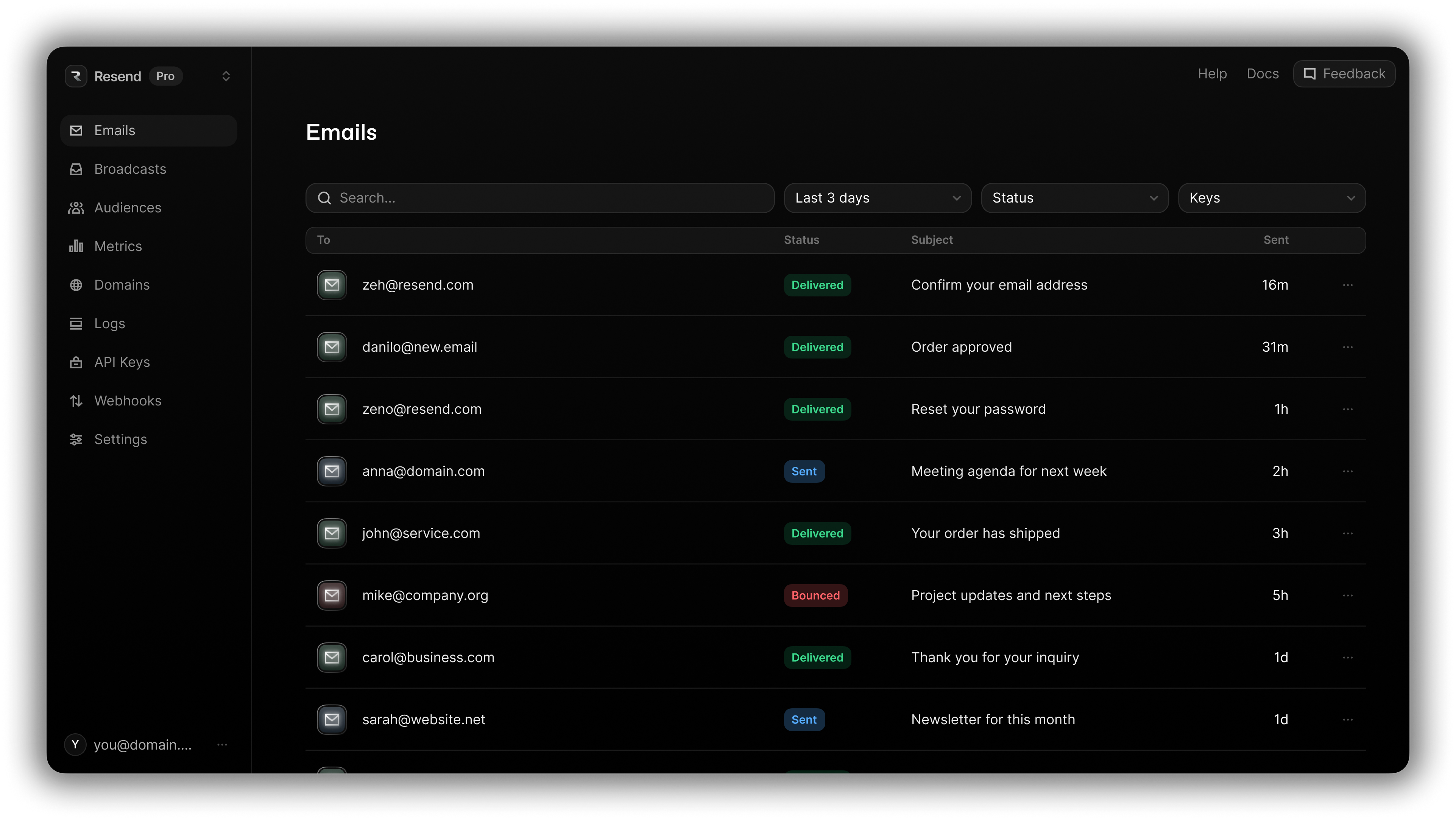 Use the following product screenshot when presenting Resend to avoid showing any sensitive information.